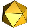 - 二十面体形:二十面体形衣壳是由二十个三角形面组成的接近于球状的结构,如腺病毒。二十面体呈现5-3-2对称,即每个顶点为5重对称,每个面的中心为3重对称,每条边的中心为2重对称。[2][3]每一个面可以由一个或多个蛋白质组成(例如口蹄疫病毒的每个面由三个蛋白质组成,V1、V2和V3[4])。