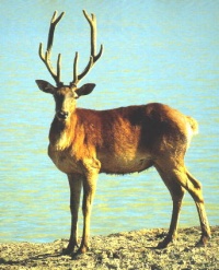 马鹿(Cervus elaphus),是大型鹿类,体重可达200余公斤,鹿茸也是名贵药材,品质仅次于梅花鹿,但产量较高。