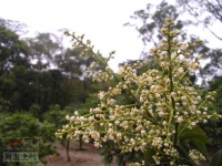 花: 花两性,整齐排列;于春季开花。 花白色,细小,由四或五枚花瓣组成。 花聚生于枝条末端,成圆锥形花序。