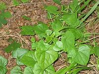 豆根 【RhizomaMenispermi 】别名:黄条香、野豆根、蝙蝠藤。来源:为防己科植物蝙蝠葛的根茎。植物形态:缠绕落叶木质藤本。小枝有细纵条纹。叶互生,圆肾形或卵圆形,先端尖,基部浅心形或近于截形,边缘近全缘或3~7浅裂,掌状脉5~7;叶柄盾状着生。花小,单性异株,花序短圆锥状;雄花萼片6,花瓣6~9,黄绿色,较萼片小;雄蕊10~20,花药球形;雌花心皮3。果实核果状,熟时黑紫色。花期6~7月,果期7~8月。生于山地灌丛中或攀援于岩石上主产东北、华北及陕西。