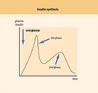 胰高血糖素(glucagon)亦称胰增血糖素或抗胰岛素或胰岛素B。它是伴随胰岛素由脊椎动物胰脏的胰岛α细胞分泌的一种激素。与胰岛素相对抗,起着增加血糖的作用。于1953年,被分离沉淀而取得结晶。它是以N-末端组氨酸为起点,C末端苏氨酸为终点的29个氨基酸残基组成的一条单链肽(分子量约为3500),分子内不具有S-S键,在这一点上,完全不同于胰岛素。该化合物的结构已由最近的化学合成所肯定。胰高血糖素的作用初期过程是与存在于靶细胞细胞膜上的受体进行特异性结合,将腺苷酸环化酶活化,环式AMP成为第二信使活化磷酸化酶,促进糖原分解。