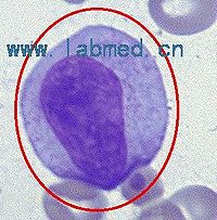 体积大,胞质丰富,染成灰蓝色,胞核常呈肾形或马蹄形,细胞形状不一,有圆形,多角形等 。
