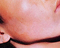(3) 好发于面部,亦多见于颈、肩、上臂处,