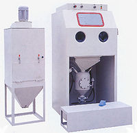 喷砂机配备自动分离和自动除尘系统,使用过的砂料被负压从机器的底部输送到旋风分离器中进行分离,将喷砂过程中产生的粉尘、锈质、氧化皮等杂质从好的砂料中分离出来。喷砂机的特点能使喷砂机继续使用的砂料储存在分离器下部的料斗中并被循环使用,大的氧化皮等杂质被分离器下部的隔网拦住,灰尘部分被输送到喷砂机除尘箱中进行处理,灰尘被收集而干净的空气被排放到大气中。