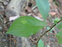 长约4.5~15厘米,宽约0.5~3.6厘米,先端及基部均渐尖,全缘,上面绿色,下面常呈紫红色。