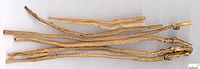 根茎短圆柱形,灰棕色,周围着生众多圆柱状细长的根,长约6~10余厘米,粗约2~5毫米,略弯曲。