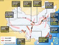 中国地震主要分布在五个区域:台湾地区、西南地区、西北地区、华北地区、东南沿海地区和23条大小地震带上。