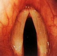脊椎动物中,两栖类以上的动物的喉头发达,在面向咽头的开口部附近,在喉头软骨之间,有左、右成对并张开的喉头粘膜皱襞,称声带,左、右粘膜皱襞之间的纵裂隙称声门裂,声带和声门裂两者合在一起称为声门。另一方面,将构状软骨间的间隙称为软骨间部。在人类软骨间部负责低言私语时的发音。广义的声门包括软骨间部,这时,声带和声门裂的(狭义的)声门就称肌肉声门、韧带声门(或膜间部)。两栖类和哺乳类的声门构成发音装置,而爬行类和鸟类则不那么发达。爬行类基本上不能发声,鸟类则不同,在气管分成支气管的交叉处,形成发声装置——鸣管。在哺乳类的声带的前方尚有一对粘膜皱襞,即假声带(又称室皱襞plica restibularis,英falsevocal cord),在它和声带两者间构成喉腔(lar-yngeal ventride),但在类人猿中,它形成非常发-达的喉囊,作为共鸣装置。喉腔是由摩根尼(G.M-orgagni,1682—1771)命名的,故又称摩根尼窦(sinus of Morgagni,ventricle of Morgagni)。声带上有声带韧带和声带肌,假声带上有室韧带和室肌。