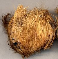 大腹毛:略呈椭圆形或瓢状。外果皮多已脱落或残存。中果皮棕毛状,黄白色或淡棕色,疏松质柔。内果皮硬壳状,黄棕色至棕色,内表面光滑,有时纵向破裂。无臭,味淡。