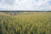 六棱大麦,穗轴每节片上的三联小穗全部结实。一般中间小穗发育早于侧小穗,因此,中间小穗的籽粒较侧小穗的籽粒稍大。由于穗轴上的三联小穗着生的密度不同,分稀(4厘米内着生7~14个)、密(4厘米内着生15~19个)、极密(4厘米内超过19个)三种类型。其中三联小穗着生稀的类型,穗的横截面有4个角,人们称4棱大麦,实际是稀六棱大麦。