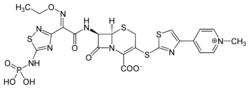 - ↑ Yukihiro I, Junko B. Stability and Stabilization Studies of TAK-599 (Ceftaroline Fosamil) a Novel N-Phosphono Type Prodrug of Anti-methicillin Resistant Staphylococcus aureus Cephalosporin T-91825. Chem Pharm Bull. 2008, 56 (10): 1406–11. doi:10.1248/cpb.56.1406. PMID 18827379.