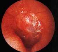 继之鼓膜弥漫性充血、肿胀、向外膨出,正常标志难以辨识,局部可见小黄点。如炎症不能得到及时控制,即发展为鼓膜穿孔。穿孔一般开始甚小,不易看清,彻底情节外耳导后,方见穿孔处有搏动亮点,实为脓液从该处涌出。坏死型者鼓膜迅速溶溃,形成大穿孔。