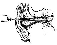 (2)鼓膜穿孔后:1)先以3%双氧水尽量彻底清洗并拭净外耳道脓液或用吸引器将脓液吸净(注意吸引器负压不可过大)。2)局部用抗生素水溶液滴耳,如0.25%-1%氯霉素液,0.3%氧氟沙星(泰利必妥)滴耳液,复方利福平液等,不主张采用粉剂,以免与脓液结块,影响引流。3)脓液减少、炎症逐渐消退时,可用甘油或酒精制剂滴耳;如3%硼酸甘油,3%硼酸酒精,5%氯霉素甘油。4)感染完全控制、炎症完全消退后,穿孔多可自行愈合。穿孔长期不愈者,可作鼓膜修补术。