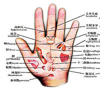 手诊通过对手形、指形、指纹、手纹、手色、指甲形色、手部血管、手腕(手颈)、手诊九区形色的观察,全面搜集诊断资料,以中医理论为指导、以全息医学为基础,结合中医辨证与西医辨病,动态而直观地揭示人体健康疾病的发展趋向,从而为治疗保健提供客观的诊断资料。手诊较之面诊,有更大的适应性:它可以不受人种肤色的局限,不受美容化妆的影响,不受人情绪的控制,具有更大的 "世界语"性质。不同人种的手纹规律相同,这是医者在给不同肤色的人手诊后得出的经验。在这介绍的手诊,是古今中外先贤们共同积累的文化财富,很值得认真研究。手诊上的任何一种形态,都是分布在人体上的健康疾病信息,人体内脏和经络、神经都有密切联系。手掌与它们互通信息,极为密切。如果把人脑比喻为“CPU”,那么手就是“显示器”。因而手诊中的表现,和身体的健康状态的反应是成正比的。事实上,无论哪种疾病,都多多少少跟内脏器官有联系。所以当患某一疾病时,总会出现相关征兆,刚开始征兆轻微,病情加重征兆也就严重起来,发出危险信号。我们的手掌上(包括手背上)有六条经络运行,而这六条经络全跟内脏器官有密切关系,所以内脏一有异常,会经过相关的人体体气的运输穴道经络、穴位,呈现出来,出现异常的色泽纹理形态的变化,它反应内脏发出的求救信号,或者是向人发出的危险红灯警告,教人引起严重注意,提醒人们防患(严重疾患)于未然。