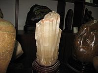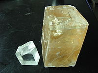 3.《纲目》:方解石与硬石膏相似,皆光洁如白石英,但以敲之段段片碎者为硬石膏,块块方棱者为方解石,盖一类二种,亦可通用。