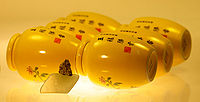 ⑤ 收膏、压模。将分层析出的茶汁经低温干燥,获得稠密度高的软膏,再入模干燥后成形,但绝大部分是收成自然的散块,放入高档瓷瓶中。