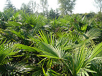 棕榈是国内分布最广,分布纬度最高的棕榈科种类。喜温暖湿润气候,喜光。耐寒性极强,可忍受零下14度的低温,是我国栽培历史最早的棕榈类植物之一。