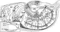 信息进入海马时由齿状回流入CA3到CA1再到脑下脚,在每个区域输入附加信息在最后的两个区域输出。CA2只占海马的一个很小部分通常将其对海马的功能忽略,值得注意的一点是这一小区域似乎能抵抗由于例如癫痫等造成的大规模的细胞破坏。