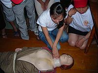 淹溺(drowning),又称溺水,是人淹没于水中,水充满呼吸道和肺泡引起窒息;吸收到血液循环的水引起血液渗透压改变、电解质紊乱和组织损害;最后造成呼吸停止和心脏停搏而死亡。淹溺后窒息合并心脏停搏者称为溺死(drowning),如心脏未停搏则称近乎溺死(near drowning)。不慎跌入粪坑、污水池和化学物贮槽时,可引起皮肤和粘膜损害及全身中毒。