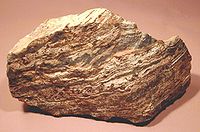 原来均一的岩浆,随着温度和压力的降低或者由于外来组分的加入,使其分为互不混溶的两种岩浆,即称为岩浆的熔离作用。日常生活中的油—水关系可以做为这方面的例子。在炼铁炉中熔炼铁矿石时,在CaCO3和CaF2等外加熔剂作用下,铁水和熔渣(硅酸盐熔体)就分为互不混溶的两个液层,铁水比重大而下沉,熔渣轻而上浮,这是同天然熔离作用很相似的又一例子。此外,也有人把玄武岩熔化后做试验,在玄武岩熔体加入CaF2,结果熔体也分为两个液层,上部为相当于流纹岩岩浆的酸性熔体层,下部为相当于橄榄岩的超基性熔体层。目前认为,在天然的岩浆中硫化物、氧化物和硅酸盐熔体可以发生熔离作用;一些含有铜镍的基性岩浆在高温时铜镍硫化物熔体完全混溶于基性岩浆中,当温度下降到某一限度后,此二种熔体即发生分离,铜镍硫化物比重大而富集于底部成矿床,硅酸盐熔体在上部固结成岩石。西南某地的含铂硫化物矿床就是这样形成。至于岩浆中不同的硅酸盐熔体之间能否发生熔离作用,尚有争议。不过一些人仍认为辉长岩中的条带状构造和某些珍珠岩中的球粒是硅酸盐熔离作用造成的。甚至近来有人提出在上地幔的岩浆源区就能够发生深部熔离作用从而产生安山岩浆和玄武岩浆的论点,尚待研究。