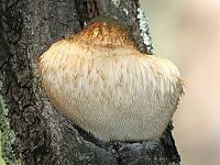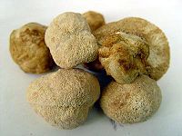 猴头菇(学名:Hericium erinaceus),是中国传统的名贵菜肴,肉嫩、味香、鲜美可口。是四大名菜(猴头、熊掌、海参、鱼翅)之一。有“山珍猴头、海味燕窝”之称。这种齿菌科的菌类,菌伞表面长有毛茸状肉刺,长约1~3厘米,它的子实体圆而厚,新鲜时白色,干后由浅黄至浅褐色,基部狭窄或略有短柄,上部膨大,直径3.5~10厘米,远远望去似金丝猴头,故称“猴头菇”,又像刺猬,故又有“刺猬菌”之称。猴头菌是鲜美无比的山珍,菌肉鲜嫩,香醇可口,有“素中荤”之称,