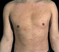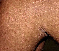 有少数病人开始皮损为红色丘疹,可互相融合成斑片,这类病人常有剧痒,称为丘疹型玫瑰糠疹。
