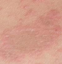 初起的损害是在躯干或四肢某处出现直径1~3cm大小的玫瑰色淡红斑,有细薄的鳞屑,被称为前驱斑,数目为1~3个。约1~2周以后躯干与四肢出现大小不等的红色斑片,常对称分布。开始于躯干,以后逐渐发展至四肢。斑片大小不一,可直径0.2~ 1cm大小,常呈椭圆形,斑片中间有细碎的鳞屑,而四周圈状边缘上有一层游离缘向内的薄弱鳞屑,斑片的长轴与肋骨或皮纹平行。可伴有不同程度的瘙痒。少数病人的皮损仅限于头颈部或四肢部位发生。本病有自限性,病程一般为4~8周,但也有数月,甚至7~8个月不愈者,自愈或痊愈后一般不复发。