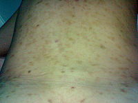 给玫瑰糠疹条目的留言--Tcmbbec 2016年3月1日 (二) 22:14 (CST) 留言: 圖解玫瑰糠疹(Pityriasis Rosea illustration) [1] 在第一段种写的是糖状鳞屑,后面写糠状鳞屑。觉得有点混淆 | |