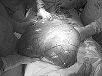4、剖宫产时发现。一些肥胖的人或怀孕的人,B超时不容易发现畸胎瘤。因此,有些产妇在剖宫产手术中,发现腹部有畸胎瘤,医生会将畸胎瘤一并剔除。