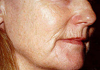 人体颜面颈部的老化,是弹性降低、皱纹形成、松弛下垂的退行性变过程,表现为:皮肤弹性降低,各种皱纹形成加深(如额横纹、鱼尾纹、鼻唇沟等),松垂改变(如眉与上眼皮松垂、 颊部松垂、羊腮等)。由于重力和退行性变引致的松垂改变,除皮肤外,重要的是皮肤深面的组织、结构,如脂肪、筋膜和肌肉。因此说来,除皱术不应单单是除掉皱纹,主要是提紧各种组织结构。西方人恰恰将除皱术称之为面部提紧术(face lift)。