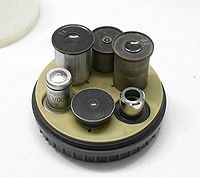 5.摄影目镜: 此目镜专门用于摄影或近距离投影,不能用作显微观察或单独放大。其像差校正与补偿目镜基本相同,宜与平面复消色差物镜或半复消色差物镜配用,使在规定放大倍数下具有足够平坦的映像。