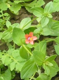 叶:单叶对生;上部叶无柄,下部叶有柄;叶片卵圆形或卵形,长1.5-2.5cm,宽1-1.5cm,先端急尖或短尖,基部近截形或浅心形,全缘或呈波状,两面均光滑无毛。