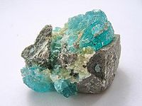 外观与性状: 浅蓝绿色单斜晶体。