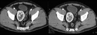 (2)X线检查:静脉肾盂造影必须在最后加摄立位片以了解其活动程度。但由于在摄立位片时必须在站立即刻,否则造影剂排尽后就不能显示肾脏,因此有时肾脏尚未下垂到平时的位置。上海华山医院泌尿科一组88例肾下垂病例的静脉肾盂造影中,共计176侧肾脏,根据在造影中活动程度,分成三类:轻度:肾活动度在一个椎体之内;中度:肾活动度在两个椎体之内;重度:肾活动度在两个椎体以上或伴有肾盂积水,输尿管扭曲。另外有一部份病例虽然在静脉肾盂造影中未能见到下垂,但从症状、体检与超声检查中仍可作出肾下垂的诊断。