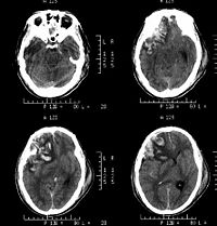 弥漫性血管内凝血(DIC),为继发于脑损伤后的凝血异常。其原因是脑组织中富含凝血激酶,外伤后释放入血,激活凝血系统。由于血小板的异常聚积,可使脑皮层、基底节、白质内以及脑干等处小血管发生血栓,随后又因纤维蛋白元溶解而引起继发出血。迟发性颅内血肿亦可能与此有关(Touho,1986)。血管内凝血需依靠实验室检查始能诊断,即血小板减少、纤维蛋白元降低及凝血酶元时间延长。一旦发生,应在积极治疗颅脑损伤的同时,输给新鲜血液,补充凝血因子及血小板。亦有作者采用肝素抗凝治疗或用