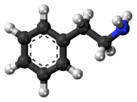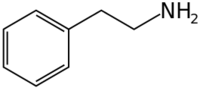 苯乙胺(Phenethylamine,PEA),或称β-苯乙胺2-苯乙胺,是一种生物碱单胺类神经递质。苯乙胺有一个结构异构体,即α-苯乙胺或称1-苯乙胺,α-苯乙胺有两个立体异构体:(R)-(+)-1-苯乙胺与(S)-(-)-1-苯乙胺。在人脑中,2-苯乙胺有神经调节物质、神经递质与示踪胺(Trace amine)的作用。苯乙胺是自然化合物,由胺基酸苯丙氨酸借由酶的脱羧作用的方式生化合成。它也可以在很多食物中找到,如巧克力,特别是在微生物发酵之后。一般都认为来自食物的苯乙胺有足够的用量会产生精神上的作用。然而,它很快就被酵素单胺氧化新陈代谢,防止其有效地集中到达脑部