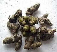 珠芽呈瘤状,少数圆柱形,直径0.5-3cm,表面灰棕色.具突起。质坚实而脆,易碎裂。断面灰黄色或灰白色,略呈粉性。气微,味微苦。