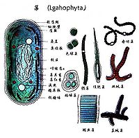 2.泛指水生藻类植物。 曹禺 《北京人》第一幕:“当中一只透明的玻璃缸,几条金鱼在水藻里悠然游漾。”参阅 清 吴其濬 《植物名实图考.水草.藻》。