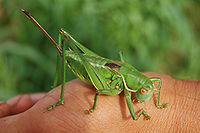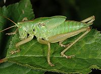 1、优雅蝈螽:体型粗壮,中等偏大,体长约35~40毫米,野生蝈螽的体色通常为草绿或褐绿色。头大,前胸背板宽大,似马鞍形,侧板下缘和后缘镶以白边。叫声如:“极-极,极-极”。