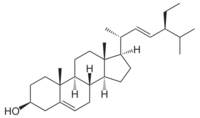 豆固醇[1](英语:Stigmasterol,24β-乙基-5,22-胆烷二烯-3β-醇)是植物固醇中常见的一种,通常位于水果与蔬菜的细胞膜中,在大豆中的含量最多。
