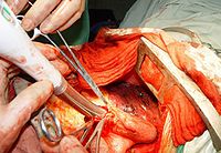 在心肺功能储备低下和高龄病人中,可以采用颈腹二切口非开胸食管内翻拨脱部分胃切除,食管胃颈部吻合术。先开腹探查病变可以切除后,通过胃底或腹段食管开口将食管探条送到颈部,此时颈部食管已经显露,在准备作吻合部位之下方将食管结扎固定在探条上,切断上方食管,持续而均匀地牵拉探条,将食管自上而下翻转拔脱。游离胃常规切除部分胃,大弯剪裁成管状,经食管床上提入颈与食管吻合,这种手术的缺点是胃切除范围受限,可以导致胃侧切缘不净有残余癌。当纵隔过去有炎症,如淋巴结核而发生粘连时,会使翻转拔脱遇到困难,拔不动或是撕裂气管支气管膜部,发生后一种情况时需立即开胸修补,如事先已经估计拔脱有困难时,最好采用开胸切除的办法。