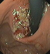 贲门癌另一始发症状是上消化道出血,表现为呕血或是柏油便。根据出血的严重程度或伴随虚脱休克,或表现重度贫血。此种情况的发生率约占病人的5%。由于缺乏梗噎症状,此种病人易被误诊为消化性溃疡出血,由腹部外科医师手术,术中方始确诊。也正是因为多数系急诊手术,各方面准备不够充分,这类病人手术并发症发生率和死亡率都较高,疗效不良。