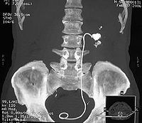 - 泌尿系X线平片:在输尿管的途径上显出结石影。
