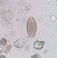 成虫在寄生部位交配产卵后,卵随寄主粪便排出体外,在土壤中经过三周左右的时间发育成感染卵,感染卵被人误食后在小肠内孵化,幼虫移行到盲肠处发育为成虫。自感染到成虫产卵约需一个月左右。日产卵数千粒,成虫寿命3-5年。轻度感染时无明显症状,重度感染出现阵发性腹疼,慢性腹泻及便血等症状,传播途径及防治与蛔虫相似。驱虫采用甲苯咪唑,阿苯哒唑效果较好,噻嘧啶与甲苯咪唑合用效果更好.
