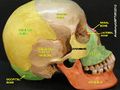 - 额角几乎为直角,与冠状缝和矢状缝的交点相对应,这一点称为前囟点;在胎儿的头骨中这一地带为膜质,称前囟,在出生后约1.5年内都是如此。