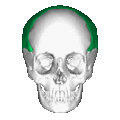 - 额缘,呈明显锯齿状,外表面上部和内表面下部均为削面,与额骨相连,构成冠状缝的一半,冠状缝与矢状缝交叉点造成T形,称前囟点。