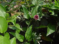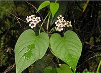 藤本,叶对生,纸质或近革质,形状变化很大,卵形、卵状长圆形至披针形,长5-9 (15)厘米,宽1-4 (6)厘米,顶端急尖或渐尖,基部楔形或近圆或截平,有时浅心形
