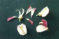 鸡血藤为攀援状乔木、灌木或为高大木质藤本。花两性,且两侧对称,位于近轴上方形似蝶首的两片花瓣为旗瓣,两侧平行与蝴蝶翅膀极为相似的两枚花瓣为翼瓣,位于最下方形状有点像盟友蝶尾巴边缘合生的两片花瓣为龙骨瓣。鸡血藤花由紫色、玫瑰红色或白色花冠组成腑生或顶生的总状或圆锥状花序,串串悬挂在空中,恰似小蝴蝶,散发出浓郁的蝶恋花香,在空中争奇斗艳,随风飘荡。