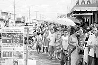 图:1888年,黄热病在佛罗里达引广泛的巩慌。在这幅画上,人们正慌忙逃离一位被怀疑患有黄热病妇女。这种疾病之所以被称为黄热病,是因为病人患有的黄疸症常常导致全身皮肤发黄。
