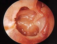 增大、中耳粘连硬化,使听力进一步下降。如不适当用药,还可引起内耳神经功能下降,更难医治。更为严重的是,中耳反复发炎可导致骨疡型或胆脂瘤型中耳炎,骨头受侵蚀时有可能导致面神经瘫、脑膜炎、脑脓肿等颅内外并发症,甚至有生命危险。